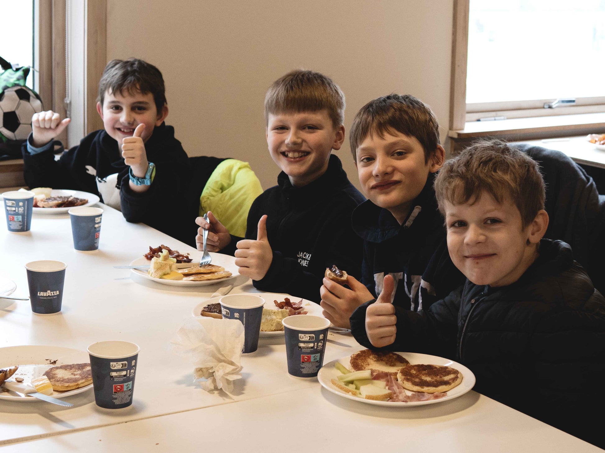 Jákup Mørk stendur við komfýrin og diskar upp við egg og bacon, amerikanskum pannukøkum og øðrum góðum.